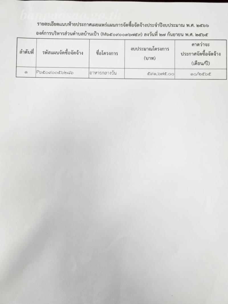 เผยแพร่แผนการจัดซื้อจัดจ้าง ประจำปีงบประมาณ พ.ศ.2566 (ศูนย์พัฒนาเด็กเล็กบ้านเป้า